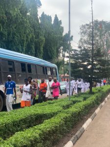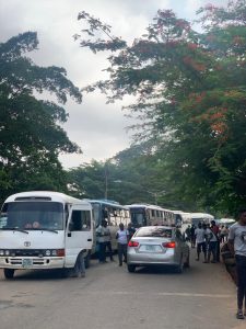 The athletes resumed to picket the gate as early as 5:30am and no vehicle has been allowed in or out of the campus making it impossible for athletes of other states to report to their various venues to continue the game.